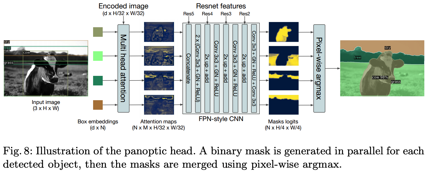 - pre-trained DETR 위에 간단한 Multi-head attention을 활용하여 segmentation task에 사용할 수 있음