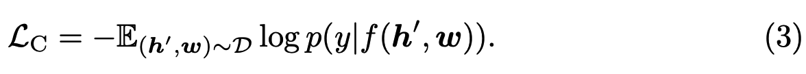 훈련의 목표는 negative log-likelihood를 최소화하는 주변 token h\i과 모든 이미지 features v를 기반으로 masked token을 예측하는 것이다. BERT에서 사용된 masked language model과 비슷하다.