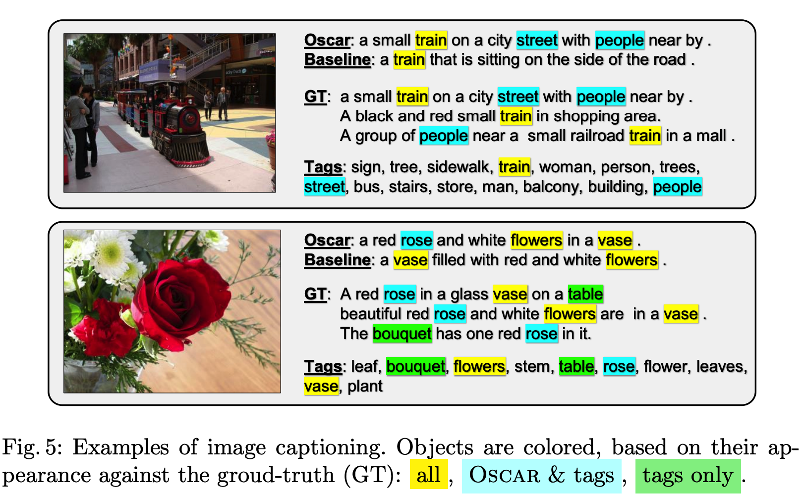 실제로, novel(새로운) object captioning에 대한 결과는 Oscar가 pre-train된 모델의 일반화(generalizability)를 향상시키는데 도움이 된다는 것을 보여준다.